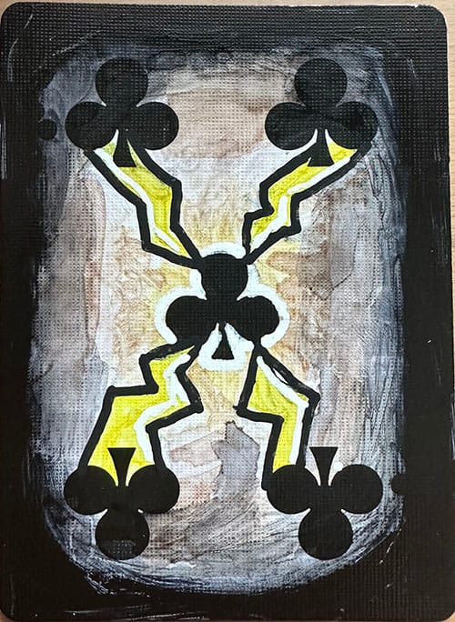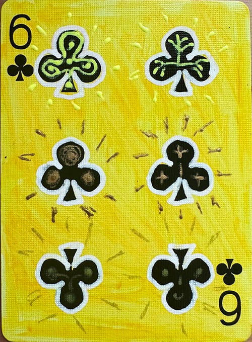 Yellow is joyful, and each club has different art on them in gold, glitter, and bright yellow. They can be medals of victory, but also different versions of the same working. Each is a victory on their own.