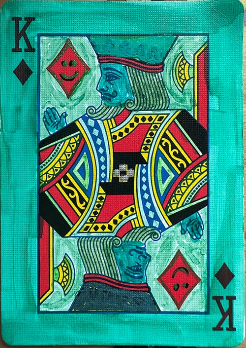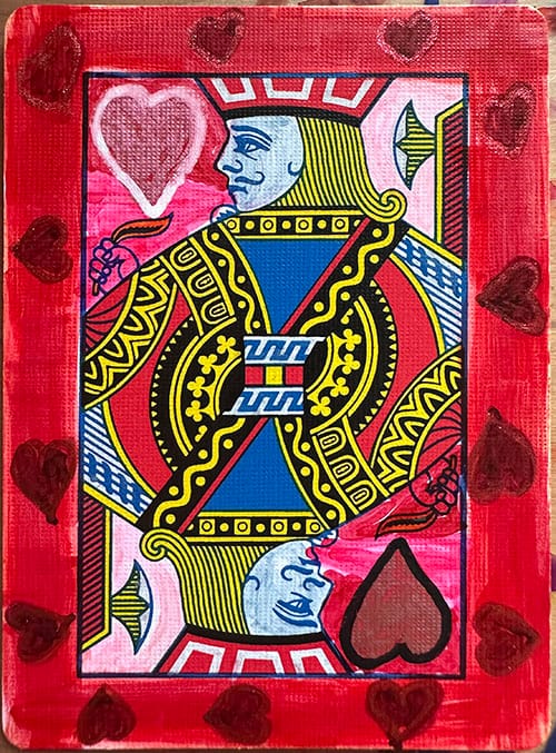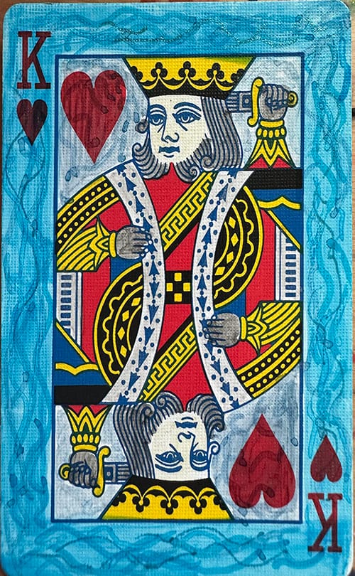 The Jack of Hearts is my romantic person, in love with the idea of love. All glitter and roses, hearts and flowers. There is an edge, as the axe is present, but over all, love is love. Sometimes it moves on from the Jack of Hearts to something more, and sometimes it's just glitter.